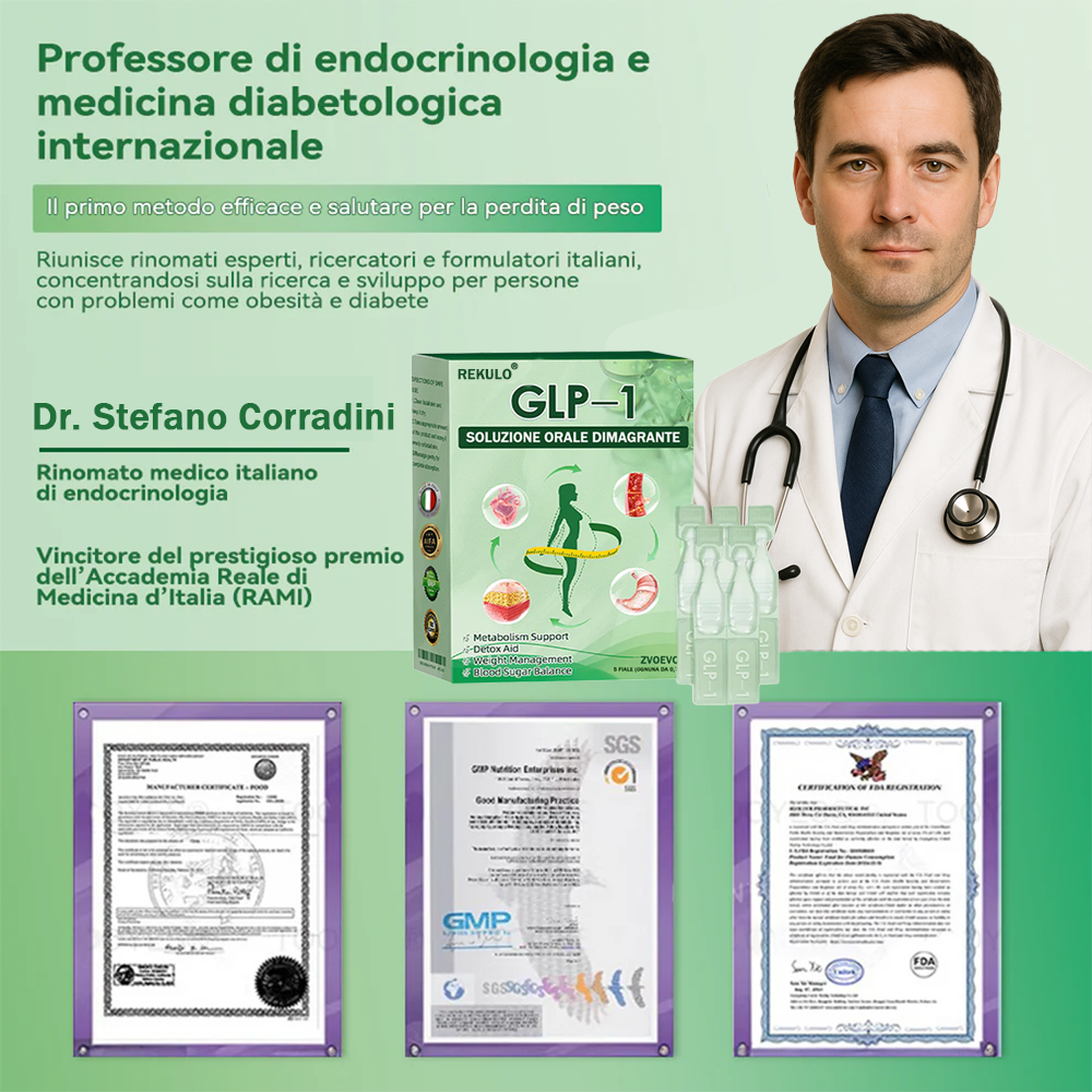 - ✅ Sicuro ed Efficace: Realizzato con ingredienti naturali e una formula supportata dalla scienza, la nostra soluzione orale è certificata AIFA e CE per qualità e sicurezza. Supporta il metabolismo, l’equilibrio glicemico, il controllo dell’appetito e una perdita di peso sana, promuovendo la vitalità generale.